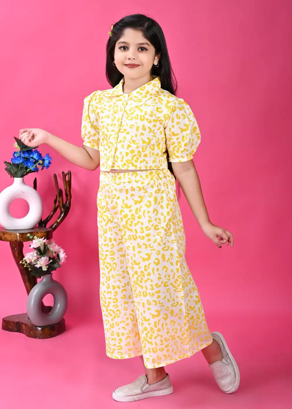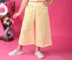 An elegant yellow palazzo kurta set offering comfort and a refined ethnic look. Suitable for festive occasions, casual functions, and daily ethnic wear.